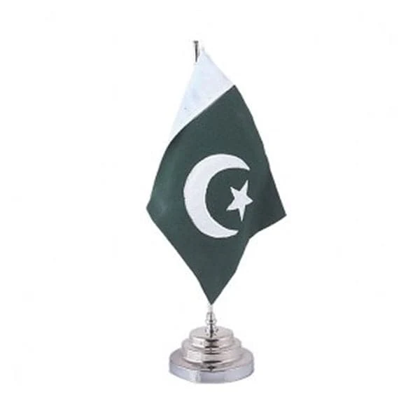 Pakistan Table Flag, Stainless Steel, Embroidered Valvet Executive Look